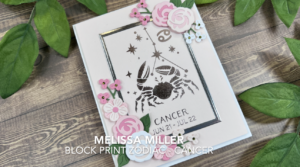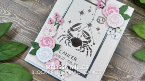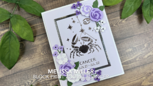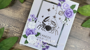Today I am sharing another card using Spellbinders Block Print Zodiacs Collection. Yesterday we used the Leo set and today we are using the Cancer set. This set was also sent to me from Spellbinders to create for them. My goal was not to necessarily demonstrate specific tips or tricks but to give you more layout ideas. Any of the signs can be used with this layout. I knew these cards would be for my mom and aunt so we are going for a more feminine feel. I started by hot foiling my image onto Chiffon cardstock using Pewter Glimmer Foil. I selected several floral images from the Spellbinders A Special Toast die set and cut these from coordinating colors and assembled them with liquid glue. I also die cut a frame from Silver cardstock using the Hero Arts Nested Rectangles set. Then it was all about assembly. I added my silver frame with liquid glue and my floral images using thin and thick foam squares. I added some Green Color Essential gems and this card was done! We created the pink one in my video, but I also shared a purple version. I’m not sure which one I like best. Which is your favorite? For more details, links to all the products I used and to watch me create this card you can click here. Thank you for stopping by!