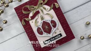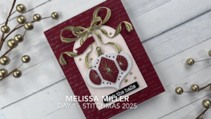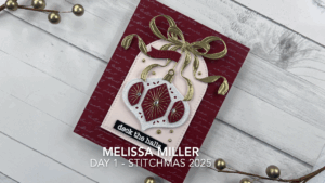 For the last few years, Spellbinders has come out with their 12 Days of Stitchmas, stitching die kit, and this year’s kit does not disappoint! There are so many cute holiday themed sets in this kit! I just don’t know if I’ll have the time to use them all. Today, I used Day 1 as an introduction to this year’s kit. Day 1 is an ornament that can be used to make a gift tag or a card. I decided to make a card. But not just any card, I wanted this one to have more of an elegant feel to it. I did a couple different samples in blues and they are more casual and not super fancy. I used all Spellbinders cardstock today. I kept it pretty simple with just 3 main colors, Cranberry, Chiffon and gold foil. I hot foiled my background piece using the Script Text Press Plate in Opal glimmer foil onto Cranberry cardstock. My layering piece was cut from Chiffon cardstock using the Perfect Touch Arches die set. I die cut my ribbons from gold foil cardstock. After I die cut my ornament pieces I stitched them using gold thread that I had in my stash from last year’s add on set. I added foam squares to my stitched pieces and then added them to my ornament. I also added foam tape behind my ornament and my Chiffon layering piece, so there is a lot of dimension. I used a combination of liquid glue and foam tape to adhere my ribbons. I heat embossed my sentiment in white on black to try to break up all the red. The Deck the Halls sentiment also came from a previous year’s add on kit, but you can use any sentiment you may have in your stash. I am really loving how this card came out considering I really didn’t have a plan when I started. I only had an idea of what I wanted it to look like. For more details, links to all the items I used and to watch me create this card you can click here. Thank you for stopping by!