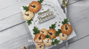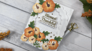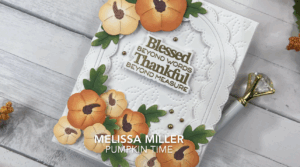 For today’s card I used Waffle Flower Crafts Pumpkin Time Texture Die and stencil set. I really wanted to get a different look from this set so after I ink blended my pumpkins and leaves, I snipped them apart from the panel vs just using the panel as a background. I used Pretty Pink Posh’s Leafy Vines plate for my background and Waffle Flower Crafts Inside Outside Scalloped Elongated Oval die for my frame piece. I added foam tape and foam strips to everything for added dimension. I love lots of dimension on my cards. My sentiment came from Waffle Flower Crafts Grateful Hearts Sentiment set and was heat embossed in Brutus Monroe’s Gilded embossing powder. After adding a few Matte Gold Pearls, this card was done! I am loving the fall colors! This can be used as a Thanksgiving card or a Thank you card and is stunning in person. The photos just don’t so it justice. For more details, links to all the products I used and to watch me create this card, you can click here.