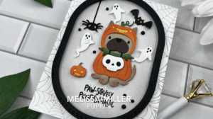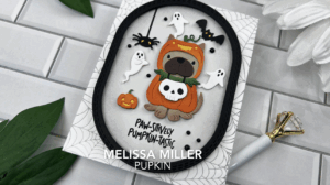 One of my favorite techniques when making a card is paper piecing. Today’s card features Spellbinders Pupkin die set, and it was so much fun to put together! I am loving the dimension and all the little details in this card. I also brought in Spellbinders Halloween Tick Tock add on set for my ghosts, spider and bat. After I selected my colors and die cut all my pieces, I added a little ink blending to some of the images for added detail. After everything was assembled, I created my background using the Spider Web Backgrounds press plate, and my frame using Pinkfresh Studio’s Double Stitched Elongated Ovals. I used foam squares on almost all of my images. I love how this came out! This little puppy dressed as a pumpkin is beyond adorable! For more details, links to all the items I used and to watch me create this card, you can click here.