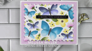 It’s been a couple weeks since I posted a video, and as I was going through my supplies, I came across Waffle Flower’s Postage Collage Spring Breeze Stencil set and knew I had found something I could make a beautiful card with. I loved watching this panel come to life. I used Distress Texture Paste on the butterfly’s upper wings and I think the glitter just adds a perfect touch. In today’s video I used several bright and cheery colors. We are already into August and I’m trying to hang on to summer before it is gone and the weather changes. So this is a Postage Collage stencil set, but you don’t necessarily need to use the Postage Collage die. The stenciled panel is absolutely beautiful on it’s own as a card. I also shared a card I made not using the Postage Collage die. For more details and links to all the products I used you can watch the video here. I love how these cards came out! They are so bright and really give off a warm summer day vibe. Thank you so much for stopping by!